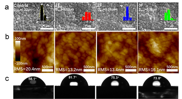 图1. 含有不同添加剂的钙钛矿器件的结构与表征