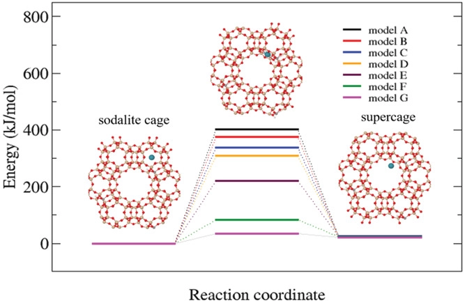 图五、分级沸石中Xe从SOD笼扩散到超级笼的势能分布