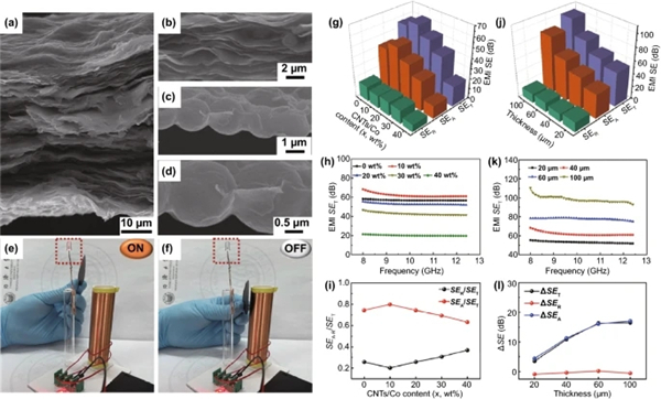 (h,i)Ti3C2Tx/CNTs/Co纳米复合材料的平均SET和不同CNT含量的40 μm厚Ti3C2Tx/CNTs/Co纳米复合材料的SEA/SET和SER/SET比率/Co图;