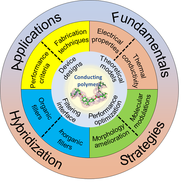 图 11. 指南针型示意图以说明提高导电聚合物基热电材料性能的方法。