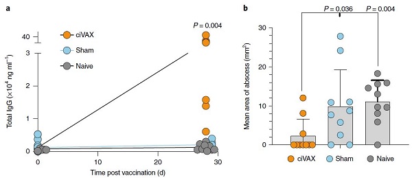 图五、ciVAX提供功能化的免疫保护抵抗革兰氏阳性金黄色葡萄球菌