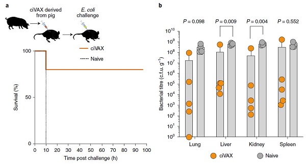 图六、从大肠杆菌感染动物中制备的ciVAX疫苗能够抵抗其他大肠杆菌血清型的感染