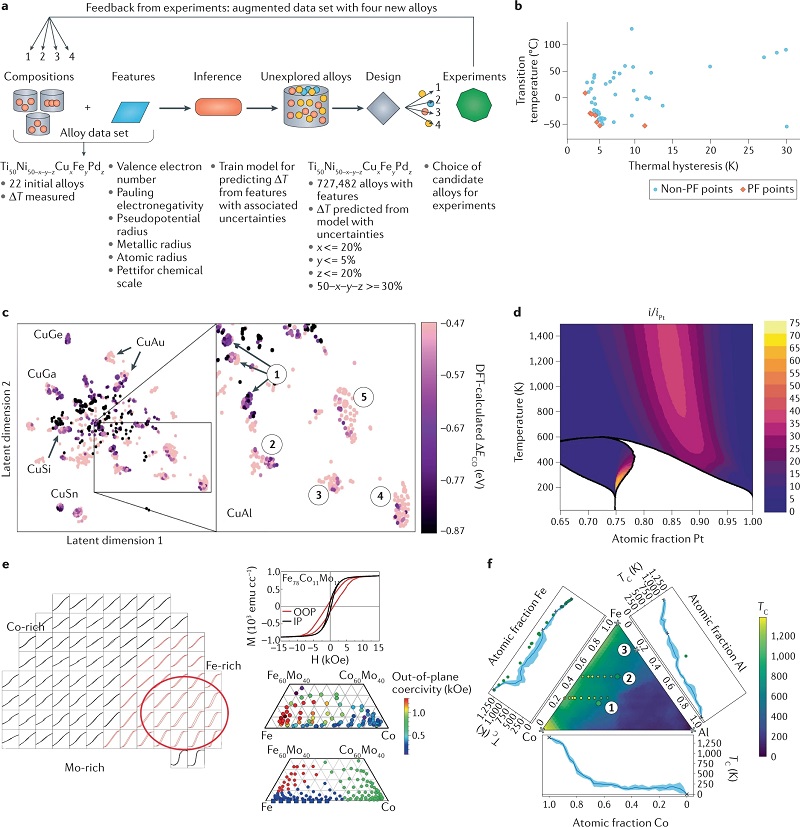 图三、形状记忆合金、催化剂和磁铁的机器学习