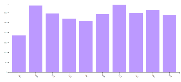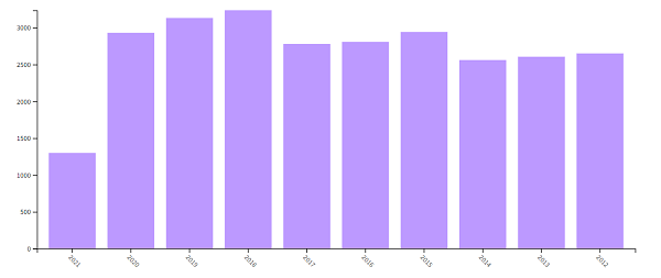 (2)按年份的被引频次(仅包含2018-2021年的文献)