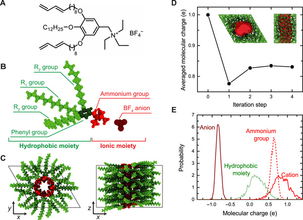 (E)在最终迭代步骤中阴离子、阳离子和阳离子内原子基团的电荷分布。
