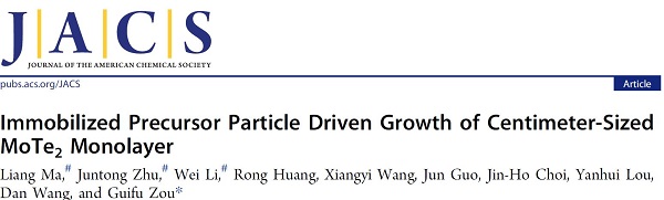文献链接:Immobilized Precursor Particle Driven Growth of Centimeter-Sized MoTe2 Monolayer, JACS, 2021, DOI: 10.1021/jacs.1c06250.
