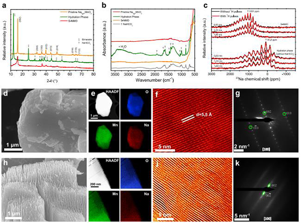 (h-k)S-NMO材料的SEM,EDS映射,TEM和SAED结果;