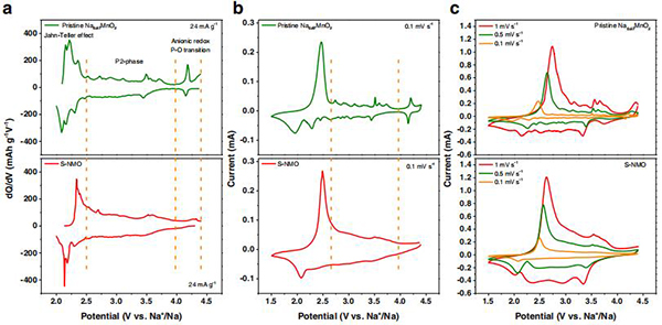 图四、原始Na0.67MnO2和S-NMO的氧化还原行为