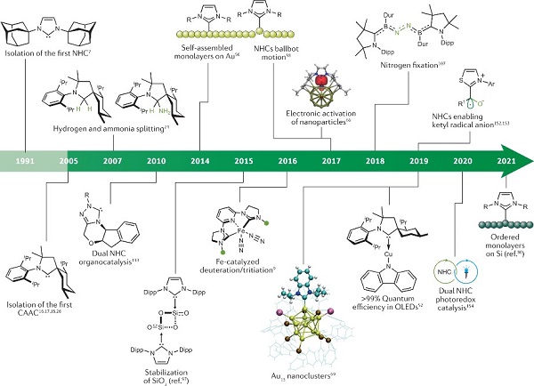 文献链接:Recent advances in the chemistry and applications of N-heterocyclic carbenes (Nature Reviews Chemistry. 2021, DOI: 10.1038/s41570-021-00321-1)