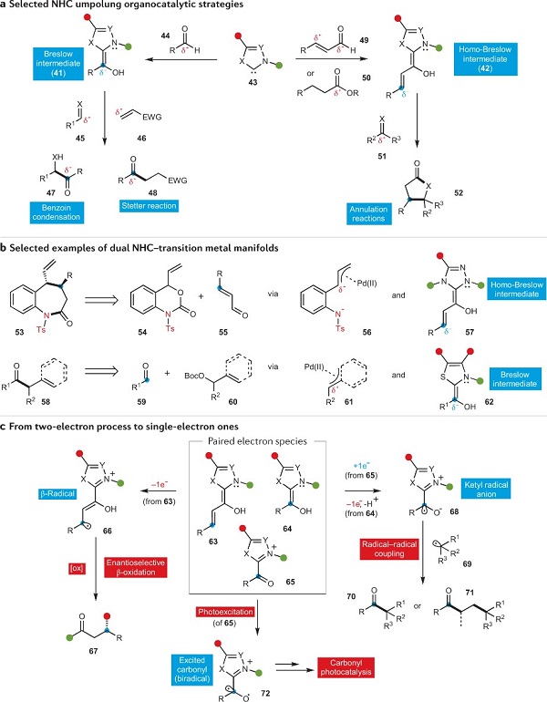 (a)N-杂环碳化物(NHC)—有机催化策略总结。
