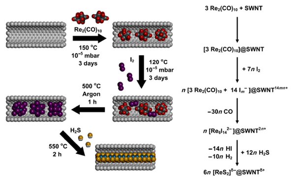 图7 通过Re团簇的包封反应合成ReS2@SWNT