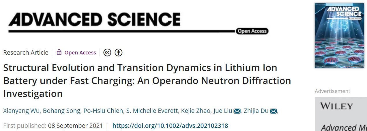 文献链接:Structural Evolution and Transition Dynamics in Lithium Ion Battery under Fast Charging: An Operando Neutron Diffraction Investigation. Adv. Sci., 2021, DOI: 10.1002/advs.202102318.