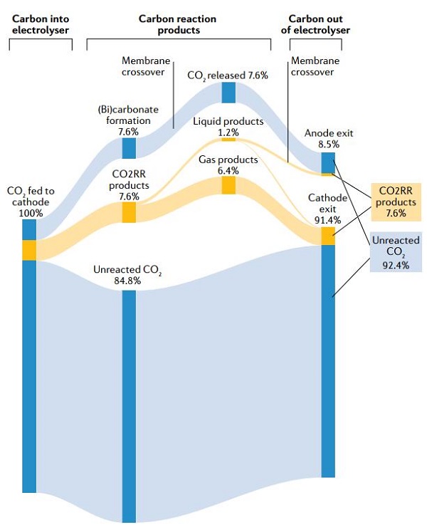 图六、零间隙膜CO2RR电解槽中的CO2交叉