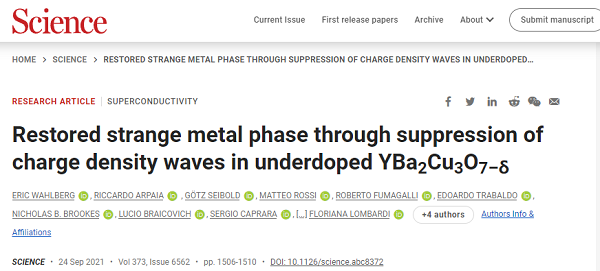 近日,查尔默斯理工大学Riccardo Arpaia、Floriana Lombardi团队利用其单胞在衬底诱导的强应变下的几何修饰调谐铜酸盐材料YBa2Cu3O7-δ(YBCO)薄膜中的基态来探究CDW与T线性行为偏离之间的关系。本工作发现,当抑制共振非弹性x射线散射检测到的CDW振幅时,高应变、超薄、欠掺杂的YBa2Cu3O7-δ薄膜的T线性电阻率得到恢复。这一发现暗示了欠掺杂铜酸盐中CDWs的出现与T线电阻率的偏离密切相关。本工作的结果说明了使用应变控制来操纵量子材料基态的潜力。相关成果以题为“Restored strange metal phase through suppression of charge density waves in underdoped YBa2Cu3O7–δ”发表在了Science上。