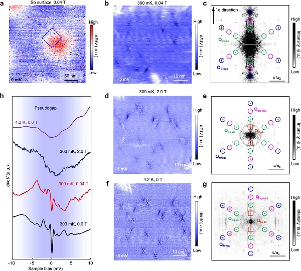 图四、CsV3Sb5中300 mK磁场和4.2 K零场中的PDW和赝隙