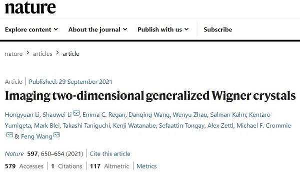 文献链接:Imaging two-dimensional generalized Wigner crystals, Nature, 2021, DOI: 10.1038/s 41586-021-03874-9.