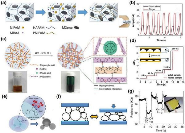 (2)与基于气凝胶和微结构弹性体的压力/应变传感器相比,基于导电水凝胶的应变/压力传感器在传感性能方面还存在差距。