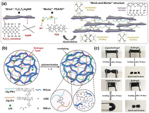 图4 基于MXene导电材料的导电水凝胶交联结构示意图