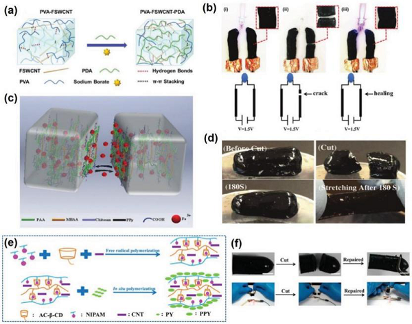 图3 基于碳纳米管和石墨烯导电材料的导电水凝胶交联结构示意图