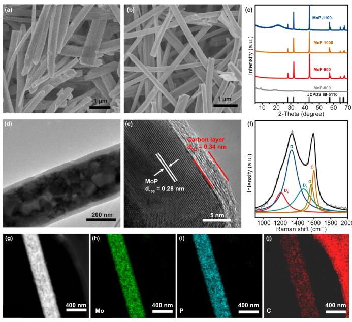 a-b. Mo-MOF前驱体和MoP@PC的FESEM图像;
