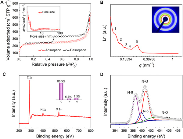 (A)N2吸附等温线,插图为对应的孔径分布。