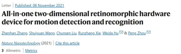 文献链接:All-in-one two-dimensional retinomorphic hardware device for motion detection and recognition(Nat. Nanotech.,2021,DOI:10.1038/s41565-021-01003-1)