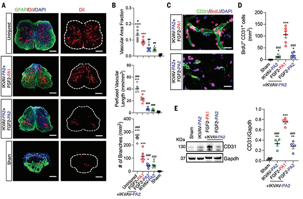 今日,美国西北大学S. I. Stupp教授(通讯作者)描述了包含两种不同信号的肽两亲性超分子聚合物,并在严重脊髓损伤的小鼠模型中对其进行测试。一个信号激活跨膜受体β1-整合素,第二个信号激活碱性成纤维细胞生长因子2受体。通过突变非生物活性域中两亲单体的肽序列,加强了支架原纤维内分子的运动。从而导致了血管生长、轴突再生、髓鞘形成、运动神经元存活、神经胶质增生减少和功能恢复的显著差异。本文的假设可以通过调整分子的内部运动来优化分子集合的细胞信号传导。相关研究成果以“Bioactive scaffolds with enhanced supramolecular motion promote recovery from spinal cord injury”为题发表在Science上。