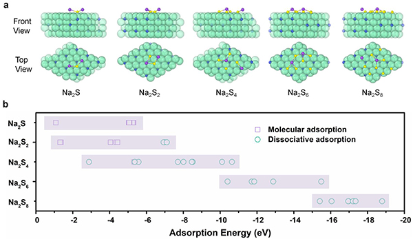 (b)计算了各种Na2Sn(n=1、2、4、6和8)对Fe3N的吸附能。