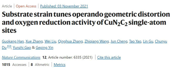 文献链接:Substrate strain tunes operando geometric distortion and oxygen reduction activity of CuN2C2 single-atom sites(Nat. Commun.,2021,DOI:10.1038/s41467-021-26747-1)