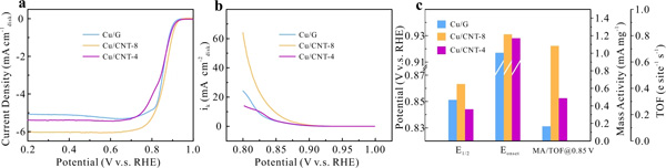 图2 Cu/G和两个Cu/CNT样品的氧还原活性