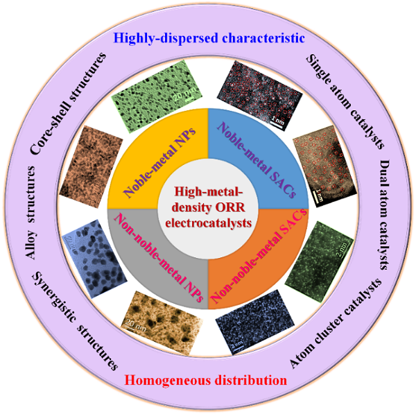 2、高密度原子水平ORR电催化剂(单原子催化剂、双原子催化剂、原子团簇和及混合原子结构催化剂)的制备方法和催化性能的系统总结。