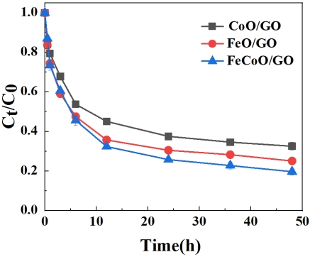 北京HTH官网地址 大学硕士生郑琳姗采用水热法制备了FeCoO/GO复合催化剂改性碳毡(CF)阴极。FeCoO/GO改性后的阴极内阻显著降低,氧催化还原性能提高。此外,OTC的降解效率和矿化率也得到了提高。