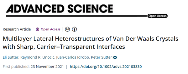 文献链接:Multilayer Lateral Heterostructures of Van Der Waals Crystals with Sharp, Carrier–Transparent Interfaces(Adv. Sci. ,2021,DOI:10.1002/advs.202103830)