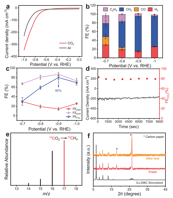 图2 Cu-DBC电催化剂的ECR-CH4性能