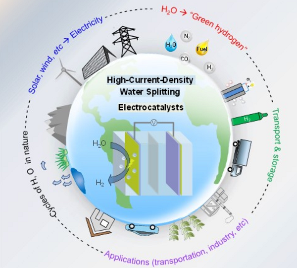 图5 高电流密度(HCD)电催化剂在通过电化学水分解技术与可再生电力结合生产“绿色氢”中的关键作用