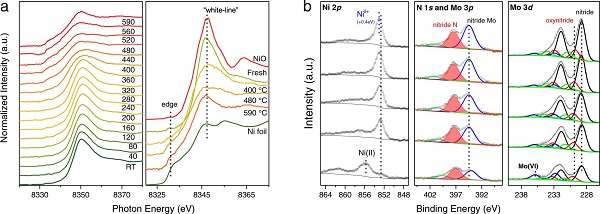 (a)从室温到590℃时4%Ni-4nm/γ-Mo2N催化剂的QXANES光谱。