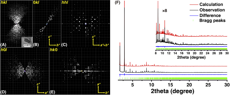 图1. ZEO-1的结构确定:(A-E)cRED;(F)SPXRD结构精修(来源:Science)