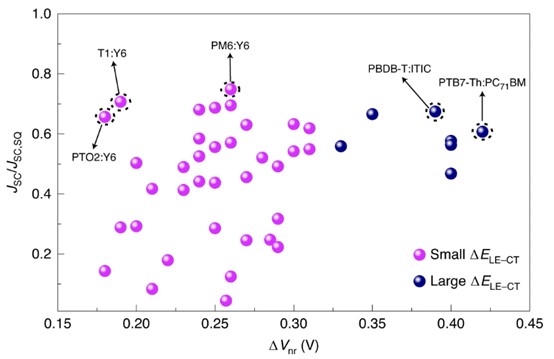 非富勒烯受体(NFA)在有机太阳能电池中的应用使其能量转换效率(PCE)高达18%。然而,有机太阳能电池的效率仍然低于无机太阳能电池,后者的PCE通常超过20%。造成这种差异的一个关键原因是有机太阳能电池由于非辐射复合。为了使有机太阳能电池在效率上超过无机太阳能电池,必须识别和抑制非辐射损耗途径。