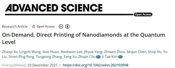 文献链接:On-Demand, Direct Printing of Nanodiamonds at the Quantum Level(Advanced Science,2021,DOI:10.1002/advs.202103598)