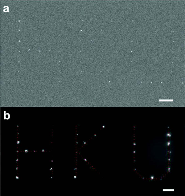 a)带有“HKU”的NV中心图案的FE-SEM图像。
