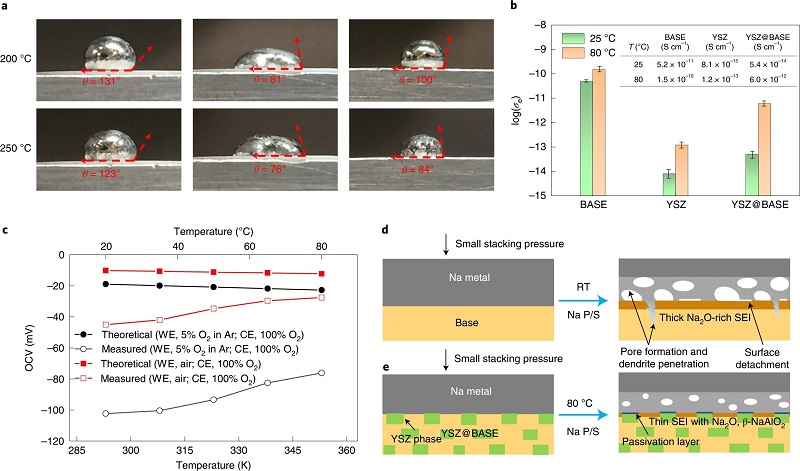 图二、在RT和80 °C下,YSZ@BASE/Na界面的表征