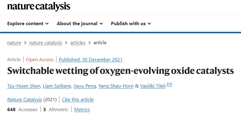 固体表面从疏水特性到亲水特性的可切换润湿特性对于刺激响应智能材料非常重要。特别是,功能性无机材料和液体之间的固液界面在电化学能源系统、水净化、可调光学透镜、自清洁表面和传感器等广泛的技术应用中得到了利用。对于金属氧化物,可逆润湿性可导致由各种刺激(包括光照、电势和温度)诱导的结构或化学改性。金属氧化物的电位诱导润湿性通过电润湿进行,特别是对于介电氧化物,如Al2O3和TaOx。当施加电位时,电荷在界面处积累并以电容器的形式排列,导致固液界面处的表面张力降低。此外,金属氧化物的表面化学会发生电化学变化,因此金属氧化物的润湿性可以通过氧化还原反应来改变。在实践中,施加电位下固体表面的润湿性可以在能量转换中发挥关键作用,尤其是在非均相催化方面。很明显,对催化颗粒的电位调节润湿的基本理解可以解开其对其活性和稳定性的影响。