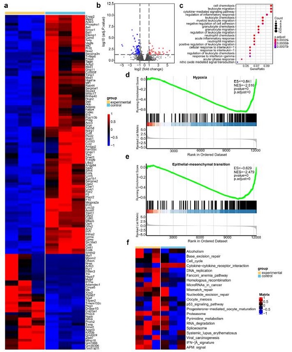 (a)实验组和对照组之间差异表达基因(DEGs)的热图;