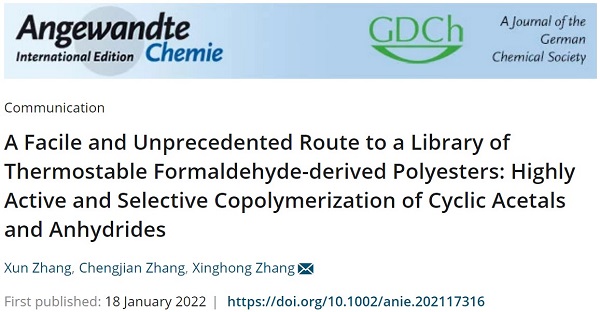文献链接:A Facile and Unprecedented Route to a Library of Thermostable Formaldehyde-derived Polyesters: Highly Active and Selective Copolymerization of Cyclic Acetals and Anhydrides (Angew. Chem. Int. Ed. 2022, DOI: 10.1002/anie.202117316)
