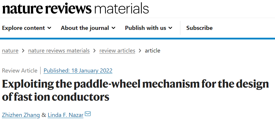 [1] Zhang, Zhizhen; Nazar, Linda F*; Exploiting Paddle-wheel Mechanism for the Design of Fast Ion Conductors. Nature Reviews Materials, 2022, https://www.nature.com/articles/s41578-021-00401-0.