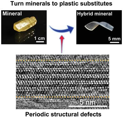 开发环保塑料对于确保可持续发展至关重要。与源自石化产品的聚合物塑料相比,生物无机矿物是地壳中含量最丰富的物质,对环境无害。然而,这些矿物的脆性限制了它们作为塑料的应用。在这里,浙江大学唐睿康课题组报道了一种生物矿化塑料:磷酸钙(CaP,一种典型的地质和生物矿物)低聚物在聚乙烯醇和海藻酸钠的调控下被用于仿生矿化,得到具有周期性结构缺陷的柔性CaP纳米纤维。CaP纳米纤维的组装产生了分层结构的块状杂化矿物(HM),它克服了矿物固有的脆性并表现出可塑性特征。HM表现出比经典聚合物塑料更好的硬度和热稳定性。值得注意的是,HM是环保且可降解的,因为它可以参与地质循环。这些优势表明这种材料是一种最佳的塑料替代品。相关研究以“A Flexible and Degradable Hybrid Mineral as a Plastic Substitute”为题目,发表在AM上。DOI: 10.1002/adma.202107523