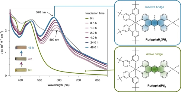 图 4 失活光催化剂Ru(tpphzH2)PtI2单重态氧脱氢的紫外–可见吸收光谱 ©2022 Springer Nature