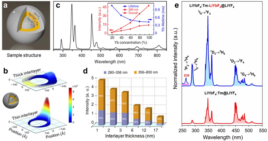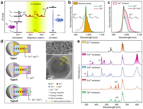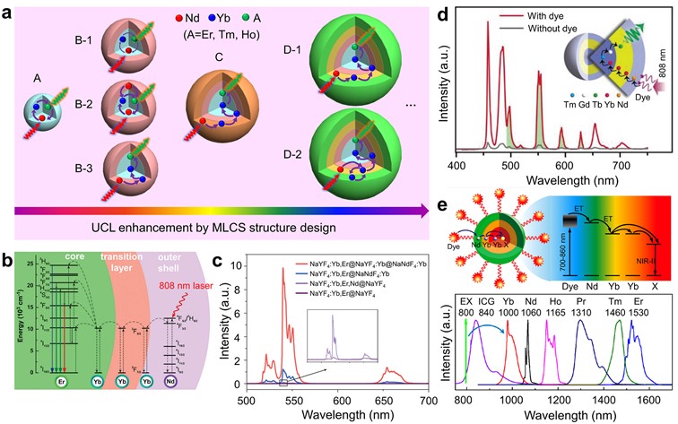 图6 运用MLCS纳米结构调控Er3+敏化体系的上转换发光。