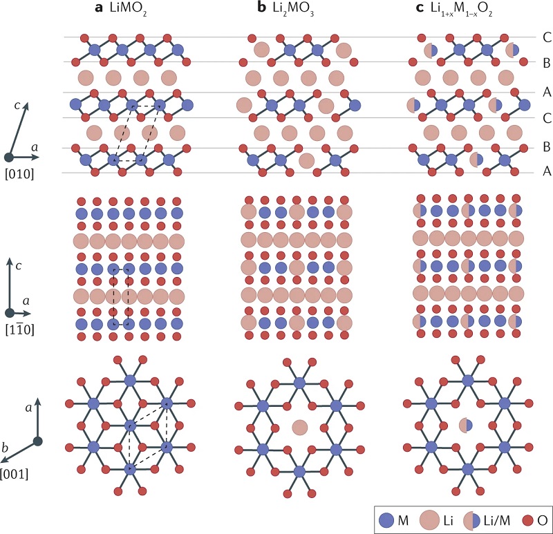 (a)传统层状LiMO2氧化物,其中M代表3d过渡金属;
