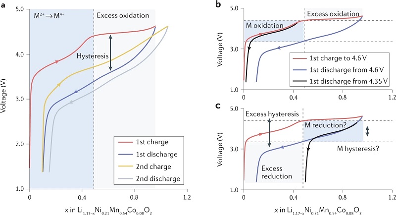 图四、Li过量层状氧化物的不同氧化还原机制